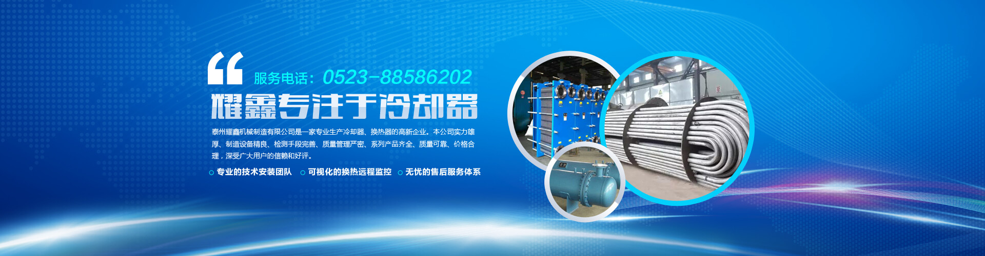 免費(fèi)咨詢方案 +泰州耀鑫機(jī)械制造有限公司座落于風(fēng)景如畫的江蘇魚米之鄉(xiāng)--全國文明城鎮(zhèn)婁莊鎮(zhèn),是一家專業(yè)生產(chǎn)風(fēng)冷卻器、列管式冷卻器、板式冷卻器的企業(yè)。本公司實(shí)力雄厚、制造設(shè)備精良、檢測(cè)手段完善、質(zhì)量管理嚴(yán)密、系列產(chǎn)品齊全、質(zhì)量可靠、價(jià)格合理,深受廣大用戶的信賴和好評(píng)。